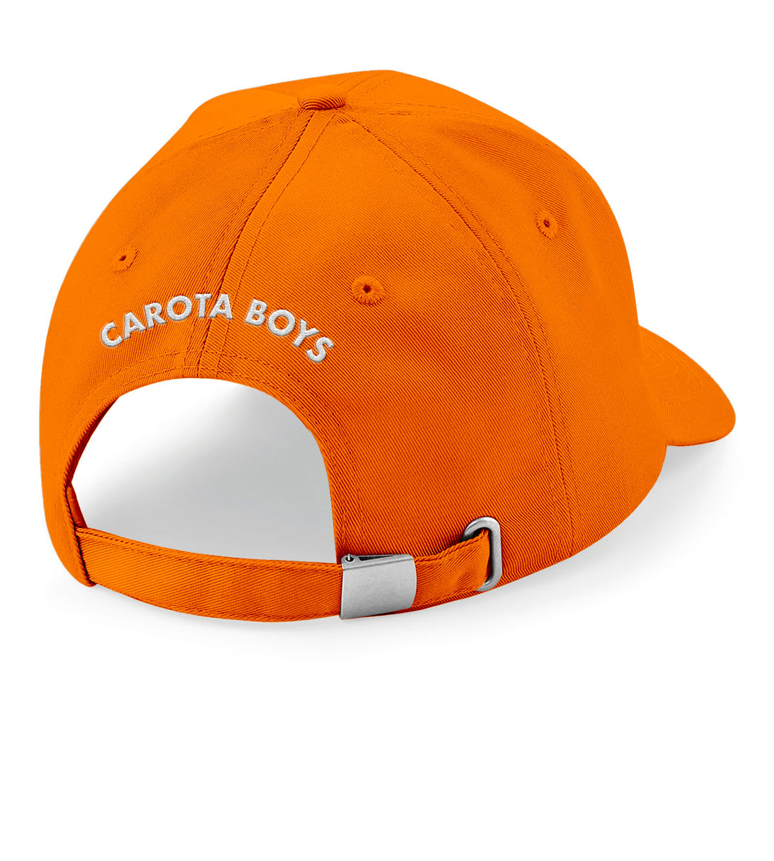 Un classico dell’abbigliamento sportivo nella versione aggiornata: fresco cappellino con visiera di colore arancio. Il logo ricamato al centro del pannello frontale e scritta CAROTA BOYS sul retro. Chiusura posteriore regolabile con fibbia in metallo e 6 occhielli di ventilazione ricamati. Taglia unica.